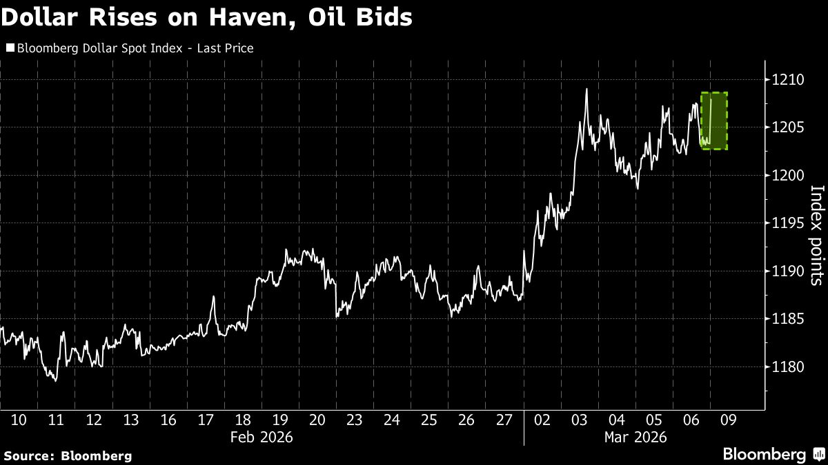 Dollar Rises on Haven Bid, Oil as Iran War Rips Across Markets March 8, 2026 · Bloomberg Read full story at source