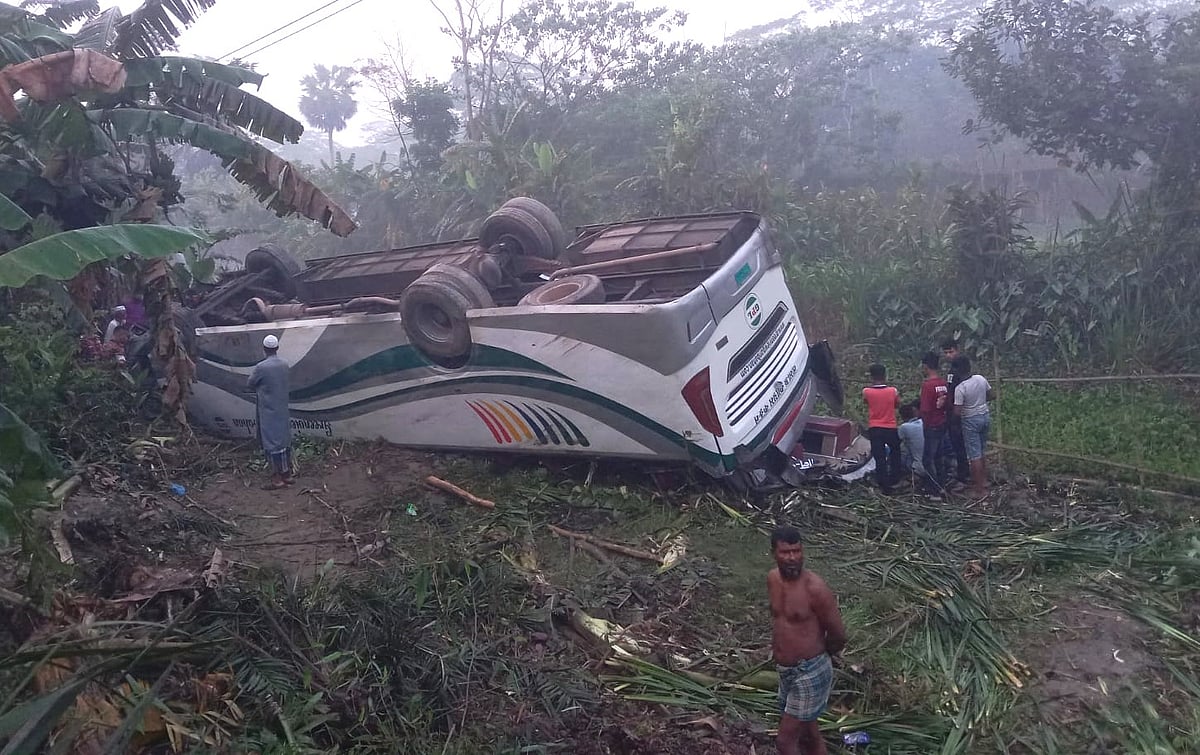 বরিশালে বাস নিয়ন্ত্রণ হারিয়ে খাদে, নিহত ১